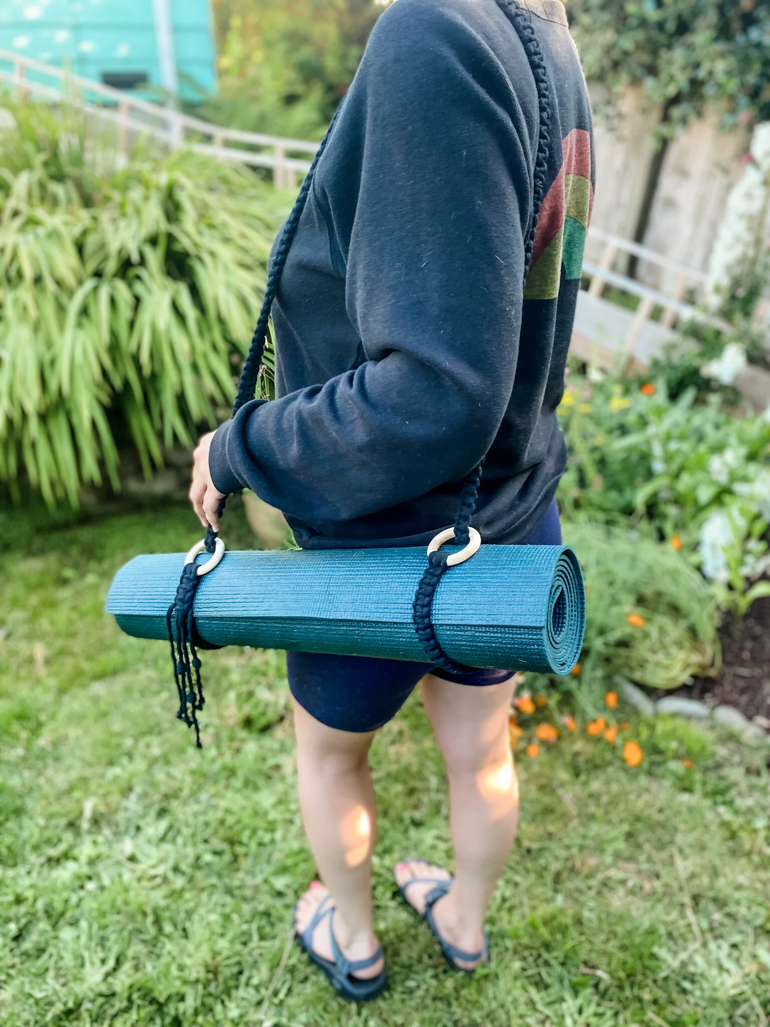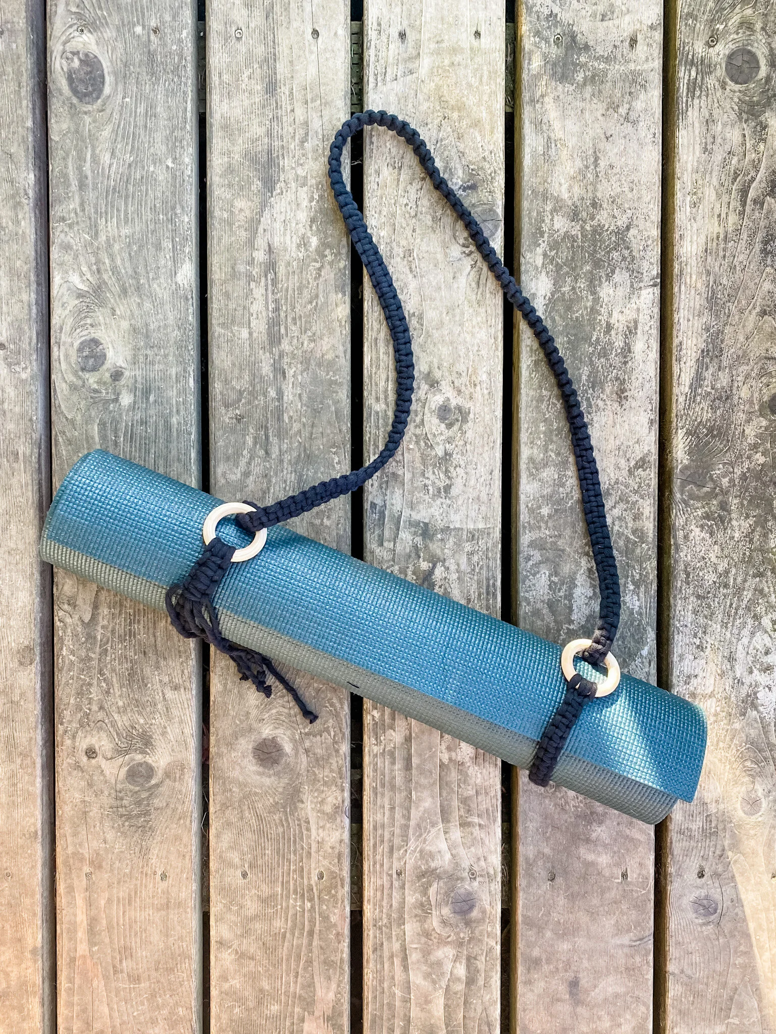 Made with soft recycled cotton cord and wooden rings, this is the perfect way to carry your yoga mat leaving you hands free to pet any dogs you may see on the way!